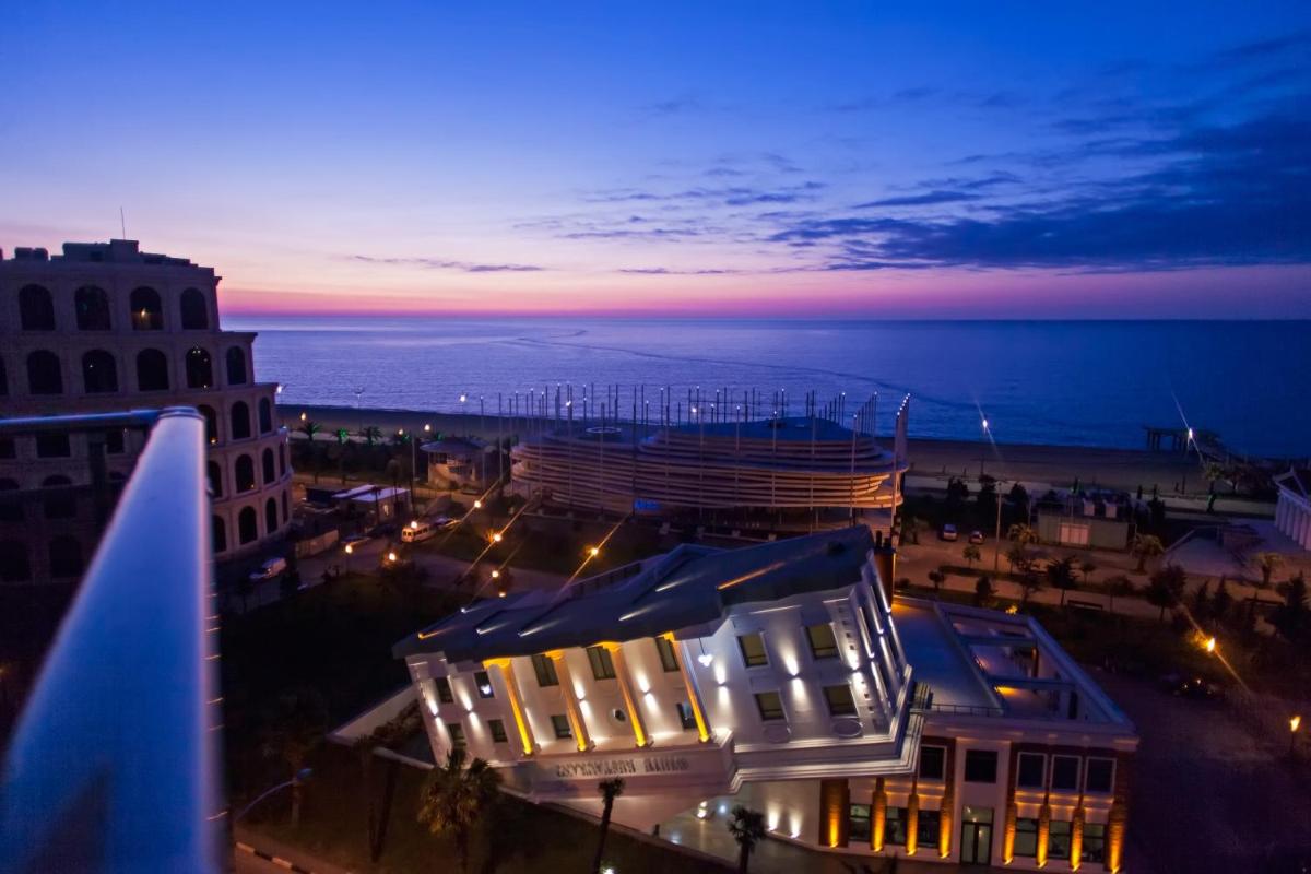 Sea View Rock Hotel, situado a solo 1 minuto del paseo de Batumi Beach, ofrece impresionantes vistas al océano. Este encantador hotel está aproximadamente a 2. 4 km del icónico monumento de Ali y Nino, por lo que es una base perfecta para explorar las atracciones locales. Convenientemente ubicado a 4. 5 km de la estación de tren de Batumi y a 6. 1 km de la antigua fortaleza de Gonio, los invitados pueden alcanzar fácilmente varios puntos de interés en sus alrededores.
