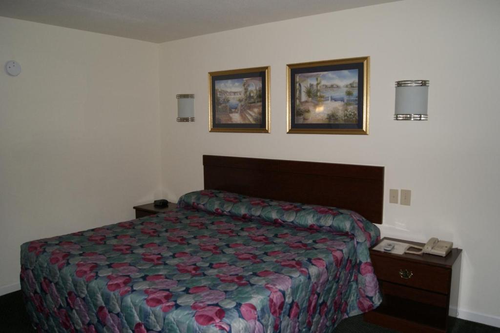 Las habitaciones en el American Inn and Suites cuentan con un microondas y un pequeño refrigerador. Los alojamientos también incluyen un escritorio, un pequeño área de asientos y televisión por cable.