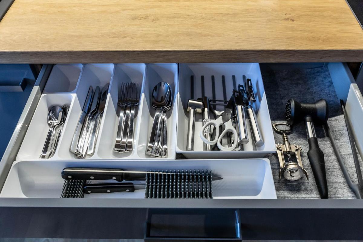 En el interior, el espacioso apartamento cuenta con una habitación, una sala de estar bien equipada y una cocina completamente equipada equipada con lavavajillas, cafetera y amplio espacio para comedor. Cada invitado disfruta de su propio baño privado con ducha y zapatillas, así como toallas de cortesía y ropa de cama en todo.
