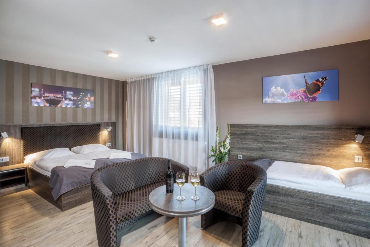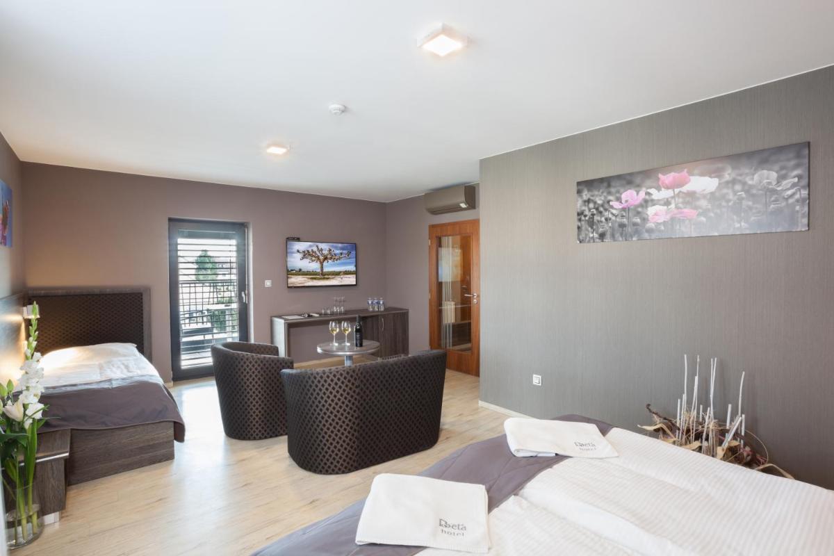 El hotel beta en Bzenec, que ofrece cómodas salas familiares con baños privados, aire acondicionado y comodidades modernas, ofrece una base ideal para explorar la región. Situado a 56 km del aeropuerto Brno -Turany, la propiedad cuenta con una terraza solar, bar y bañera de hidromasaje, complementado por una sauna y baño de spa. Disfrute de la cocina internacional en el restaurante familiar, que también sirve un desayuno buffet junto con opciones a la carta. La ubicación cerca de las rutas de ciclismo lo hace conveniente para las actividades al aire libre, mientras que la proximidad del hotel a varios museos mejora las experiencias culturales. Con habitaciones no fumar, Wi-Fi de cortesía, estacionamiento gratuito, habitaciones familiares y excelentes instalaciones, Hotel Beta asegura una estadía memorable.