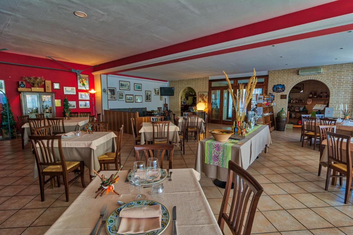 El restaurante del hotel es extremadamente popular en San Severino Marche. Se recomienda una serie de guías y es particularmente conocido por su bandeja de queso. En el verano puedes cenar en el jardín. Compre una variedad de vinos y comida locales en la pequeña tienda del hotel.
