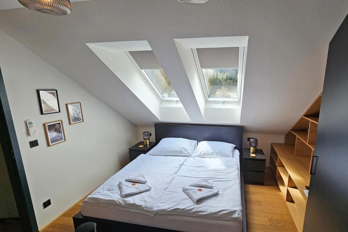 Acerca del ENJOYHARRACHOV - Atraktivní slunný klimatizovaný apartmán 14 v centru Harrachova se saunou, parkováním, Wifi-WLAN, SAT, herní konzolí, PC s win 10, Netflix zdarma a možností dobíjení auta s jedinečným výhledem na Čertovu horu se skokanskými můstky