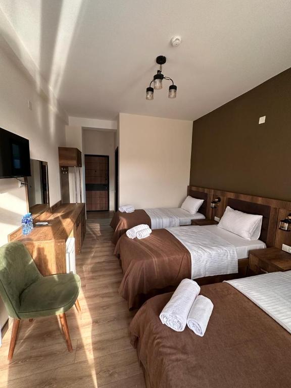 Cada una de las cómodas habitaciones del hotel está equipada con comodidades modernas como un refrigerador, minibar, té eléctrico, bidé, artículos de tocador de cortesía y un escritorio. Para mejorar la comodidad aún más, cada suite viene completa con un armario y un televisor de pantalla plana. Además, algunas habitaciones ofrecen un balcón privado, que ofrece impresionantes vistas del paisaje circundante.