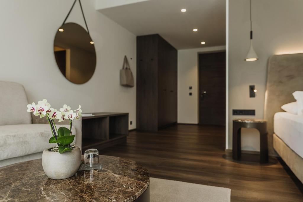 Cada habitación en Klein Fein Hotel Anderlahn está meticulosamente amueblada para proporcionar a los huéspedes un retiro cómodo. Equipado con ropa de cama y toallas de lujo, estas unidades ofrecen un amplio espacio para relajación y ocio. Las comodidades incluyen un televisor de pantalla plana con canales satelitales, un área de asiento y una caja de seguridad. Algunas unidades cuentan con impresionantes vistas a la montaña, mientras que otras presentan balcones que ofrecen impresionantes vistas del paisaje circundante.