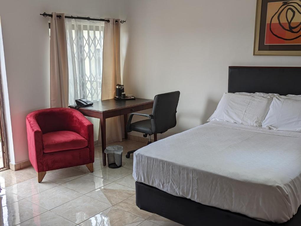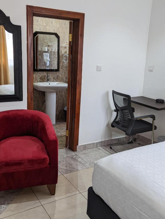 Koko Palm Inn Ltd, ubicado en Accra a aproximadamente 8. 9 km del Kwame Nkrumah Memorial Park, ofrece alojamientos cómodos con servicios como una piscina al aire libre, estacionamiento privado gratis, un jardín y un salón compartido. Este establecimiento de 1 estrella presenta una recepción de 24 horas, servicio de habitaciones y acceso a Wi-Fi de cortesía en todo el local. Los invitados pueden saborear auténtica cocina africana y estadounidense en el restaurante o relajarse con bebidas en el bar. Los habitantes ofrecen aire acondicionado, televisores de pantalla plana con canales satelitales, refrigeradores, teteras eléctricas, duchas, artículos de tocador de cortesía, escritorios y baños privados equipados con secadores de pelo. Algunas unidades cuentan con balcones. La terraza del hotel ofrece vistas panorámicas. Convenientemente situado cerca del arco de Independence, el Aeropuerto Internacional de Kotoka está a solo 3. 1 km de distancia. El Centro DuBois para la cultura panafricana está a 5,1 km de la propiedad. Para aquellos interesados en explorar las atracciones locales, los museos cercanos incluyen Untamed Empire, que está a 3,1 km del hotel.