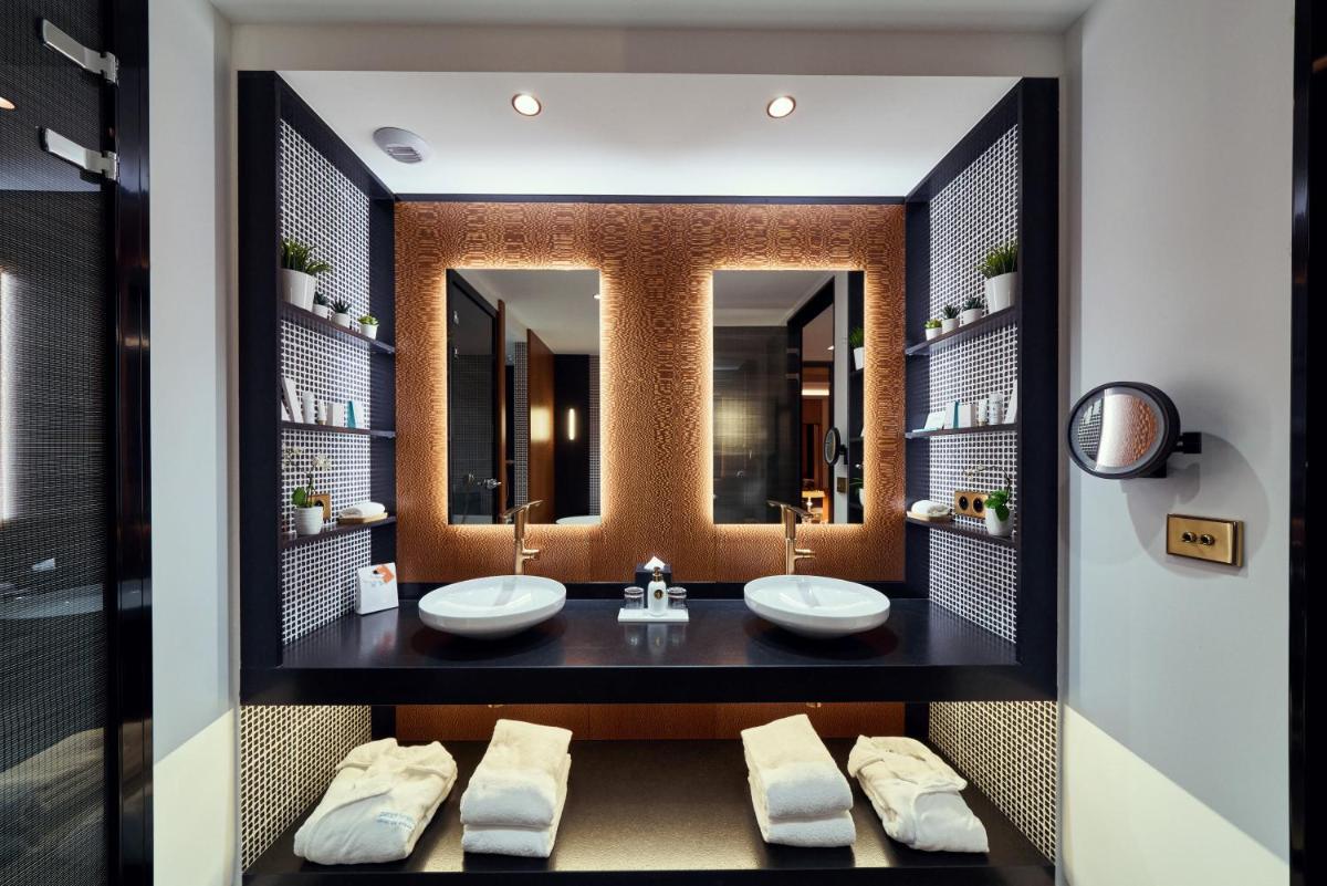 Los huéspedes pueden disfrutar de la cocina francesa gastronómica en el restaurante Patrick Henriroux, o la cocina de estilo bistro en el restaurante L'Espace Ph3, abierto todos los días.