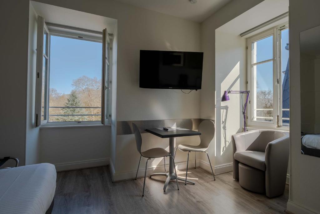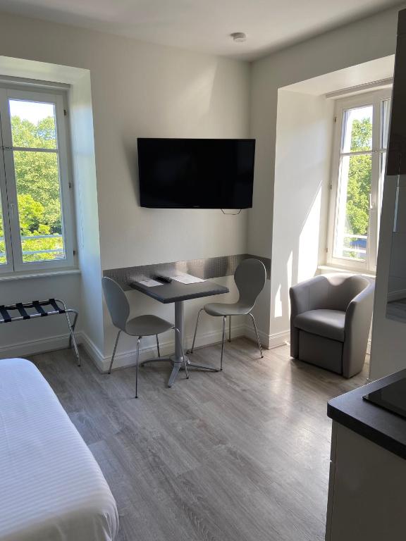 Las alojamientos en La Résidence de L'Orangerie cuentan con instalaciones de vanguardia diseñadas para mejorar la comodidad y la conveniencia. Cada unidad incluye un televisor de pantalla plana con una amplia selección de canales de cable, lo que garantiza que las opciones de entretenimiento nunca se limiten. Para aquellos que buscan un ambiente más relajado, algunas unidades cuentan con un comedor o una terraza que ofrece impresionantes vistas del paisaje circundante.