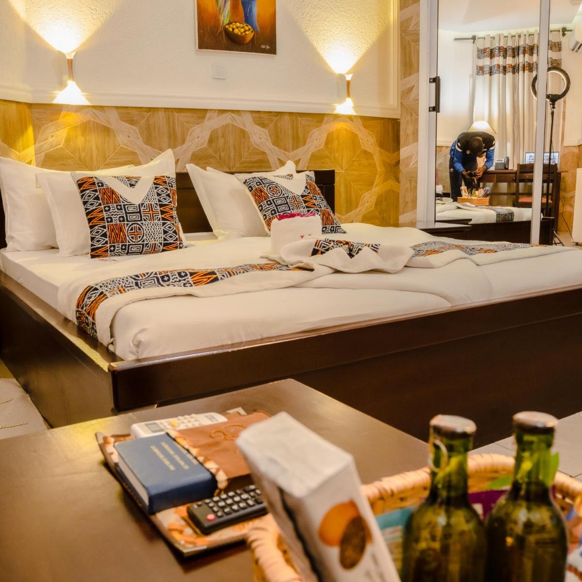 Ubicada a 28 km de la Reserva de Vida Silvestre Santchou en Bana, La Vallée de Bana cuenta con alojamientos de lujo con una atractiva piscina al aire libre, estacionamiento privado gratuito y un gimnasio de última generación. Los huéspedes pueden relajarse en el salón compartido o disfrutar del servicio de habitaciones de cortesía. Disfrute de auténtica cocina africana y francesa en el restaurante o relájese junto al acogedor bar. La propiedad ofrece una espaciosa terraza donde los huéspedes pueden participar en diversas actividades recreativas, como jugar al billar, el tenis de mesa y el tenis. El hotel también cuenta con una máquina de té y café bien surtida en cada habitación, lo que lo hace ideal para aquellos que buscan una estancia cómoda. Los miembros del personal son competentes tanto en inglés como en francés, asegurando una comunicación sin problemas durante los procesos de check-in y check-out. Convenientemente situado cerca del Aeropuerto Internacional Dooala, La Vallée de Bana promete una experiencia de vacaciones memorable para los viajeros que buscan un retiro tranquilo en medio de la belleza de la naturaleza.
