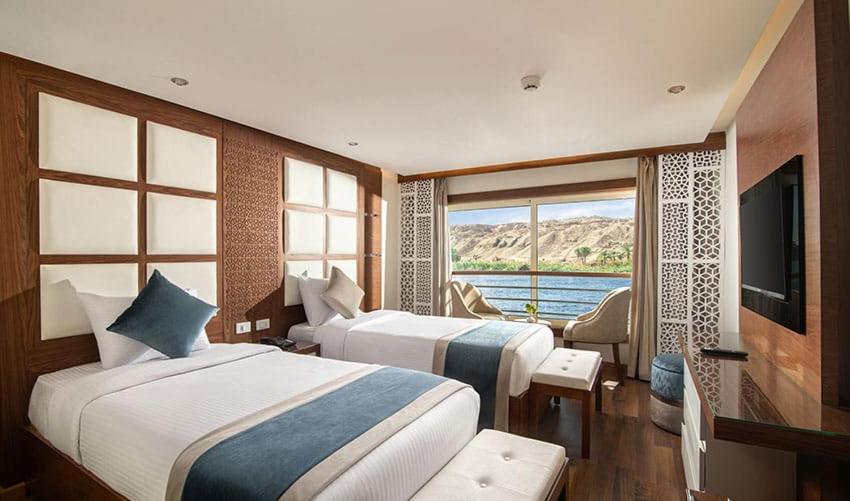 Nile Cruise 3 y 4 y 7 noches incluidos tours ofrece alojamientos de lujo ubicados a solo 1. 2 km de la estación de tren de Luxor, brindando a los huéspedes una experiencia memorable. Este hotel de 5 estrellas cuenta con un salón compartido, estacionamiento privado gratis, una terraza y comodidades, como un restaurante y un centro de spa. Los huéspedes disfrutan del acceso WiFi de cortesía durante su estadía, junto con el servicio de habitaciones y una recepción de 24 horas. Los baños privados vienen completos con bidets y artículos de tocador gratuitos, lo que garantiza la comodidad durante las estadías. Disfrute del desayuno todas las mañanas con una variedad de opciones de menú. Relájese jugando a la piscina en las instalaciones de natación en interiores del hotel. Ubicada convenientemente cerca de atracciones clave como el Museo Luxor y Colossi de Memnon, los viajeros aprecian la fácil accesibilidad. Convenientemente situado a 5 km del aeropuerto internacional de Luxor, lo que hace que los arreglos de viaje fueran sin problemas.