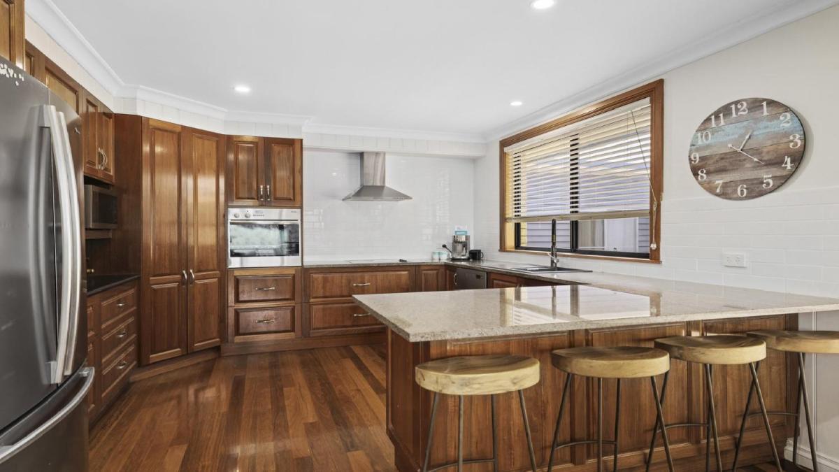 Pipe Dreams en Arrawarra es una espaciosa casa de vacaciones que ofrece cinco dormitorios y tres baños. Disfrute de vistas al mar, aire acondicionado y una terraza. Las características incluyen WiFi gratuito, un servicio de lavandería y estacionamiento privado gratuito en el lugar. Convenientemente ubicado a 21 km del aeropuerto de Coffs Harbor, está cerca de Ocean View Beach, Arrawarra Beach y Mullaway Beach. Cerca del gran plátano, los invitados pueden relajarse en una bañera de hidromasaje, sauna y área de barbacoa. Altamente calificado, proporciona una estancia cómoda y agradable.