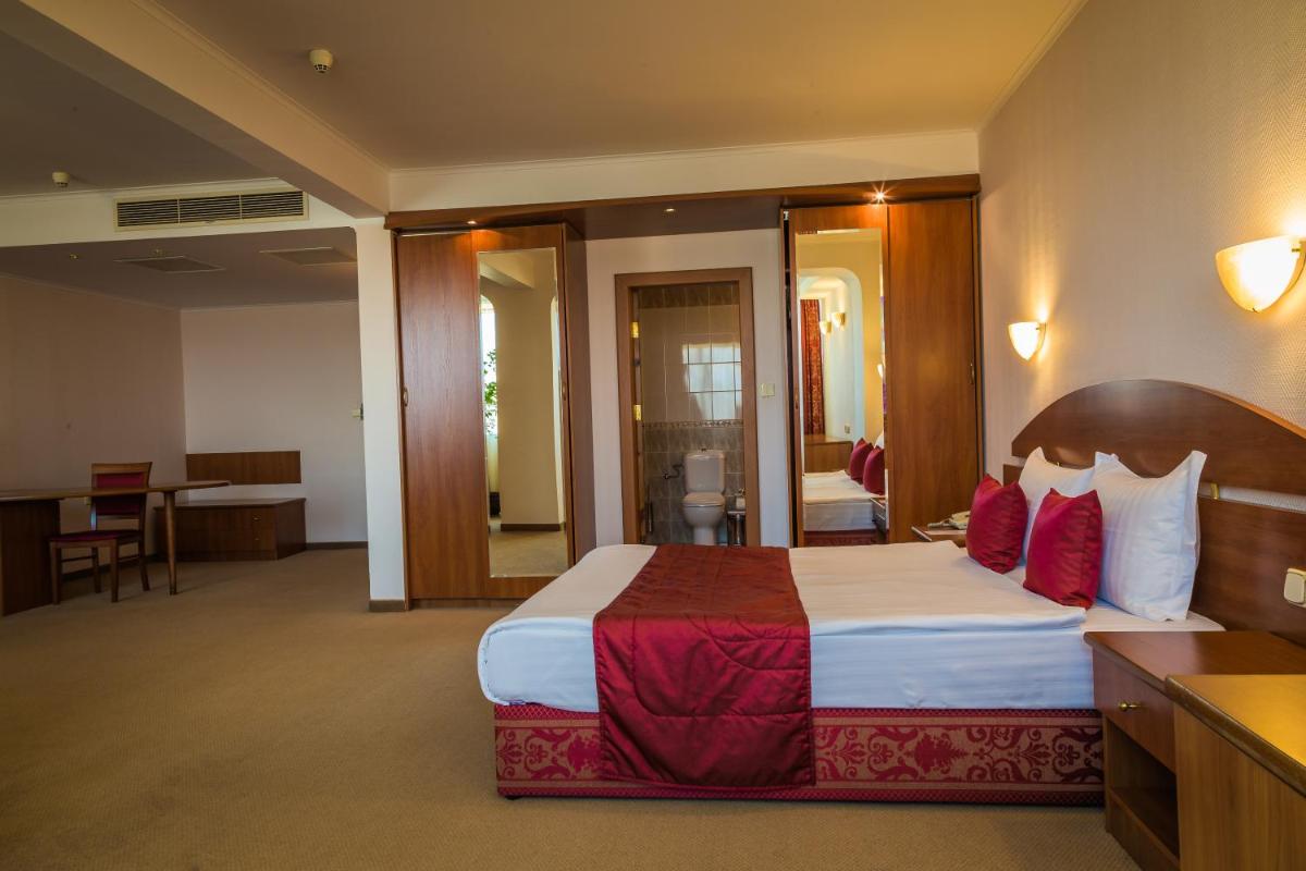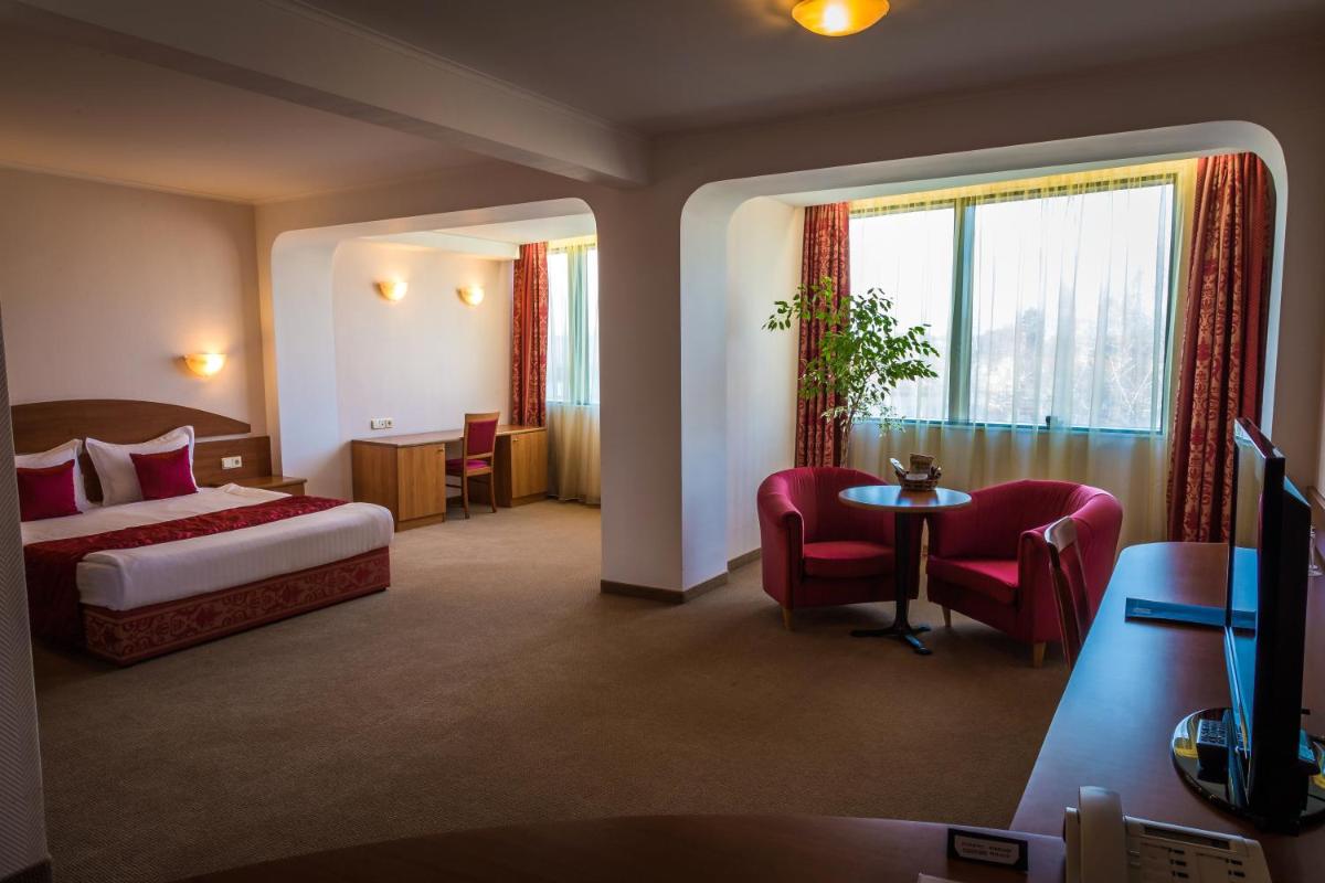 Sevlievo Plaza Hotel ofrece un alojamiento cómodo a solo 23 km de Etar. Los huéspedes disfrutan del acceso a un gimnasio bien equipado, un exuberante jardín y una terraza encantadora. Cada una de sus habitaciones de 4 estrellas cuenta con aire acondicionado, Wi-Fi gratis y un baño privado. Las suites aireadas vienen completa con una vista de la ciudad, televisores de pantalla plana y ropa de cama lujosa. Las instalaciones del hotel incluyen un centro de negocios, almacenamiento de equipaje y un restaurante en el lugar que sirve deliciosas comidas. Las habitaciones también ofrecen servicio de habitación de cortesía. El establecimiento para niños cuenta con un patio de recreo y un área dedicada para familias. Situados cerca de importantes hitos históricos, como el Museo Arqueológico de Veliko Turnovo y el Monasterio Sokolski, este hotel se destaca entre sus compañeros, particularmente atractivo para las parejas que aprecian su ubicación principal.