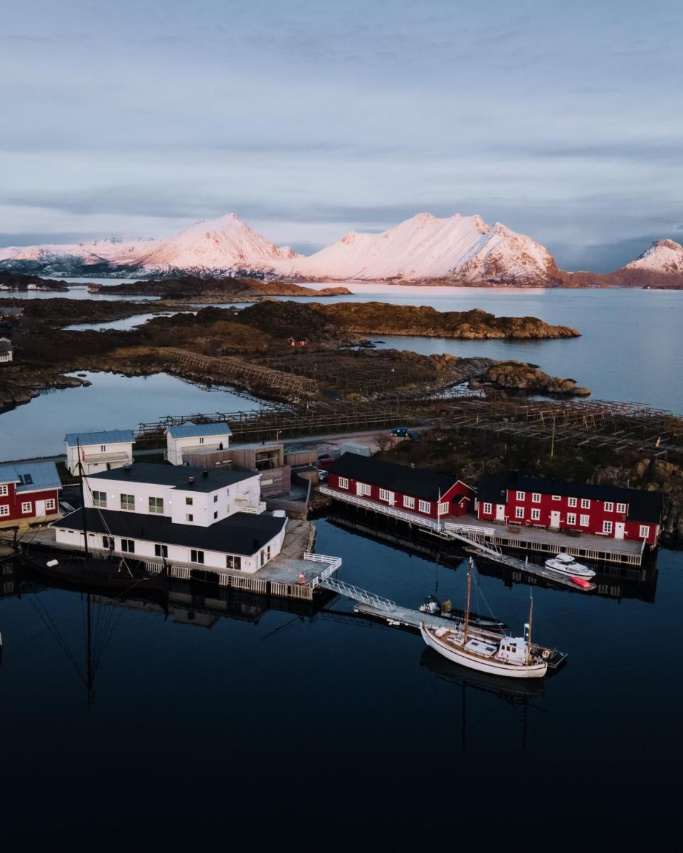 Las comodidades cercanas incluyen el bullicioso supermercado de Ballstad ubicado a solo 984 pies de distancia y el aeropuerto de Leknes situado aproximadamente 7. 5 km al norte. Para las delicias culinarias, los lugareños recomiendan visitar Solsiden Lofoten, conocido por su enfoque en mariscos frescos y especialidades regionales. Además, hay una barra conveniente convenientemente ubicada en el sitio, asegurando un fácil acceso a los refrigerios durante todo el día.