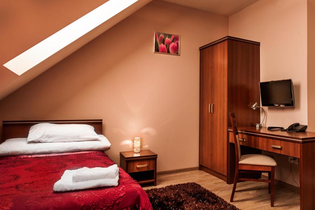 Trzy Korony, un encantador hotel de 3 estrellas ubicado en la pintoresca ciudad de Głogów Małopolski, cuenta con un entorno envidiable a solo 7 km del bullicioso centro comercial de Nowiat. Al ofrecer una combinación de comodidades modernas y encanto tradicional, este establecimiento promete una estadía memorable para los viajeros exigentes que buscan comodidad y relajación. Con sus espaciosos jardines, un amplio estacionamiento privado gratuito y su atractiva terrazas, los invitados pueden disfrutar de un retiro sereno en medio de la belleza de la naturaleza.
