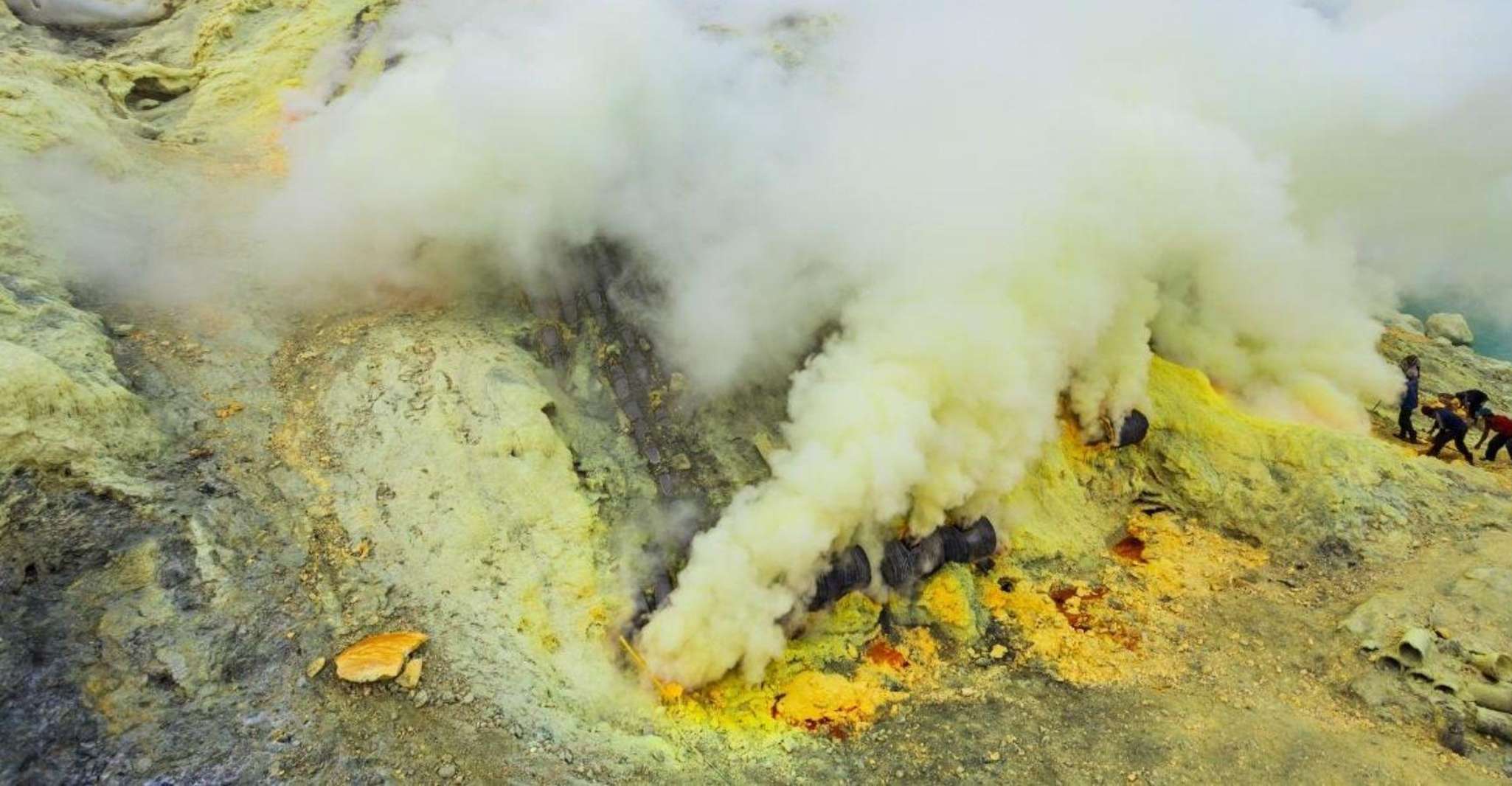 A medida que asciende hacia el cráter, el impresionante espectáculo se desarrolla ante sus ojos: el enorme y prístino lago ácido turquesa que se extiende sin fin en el horizonte.Al anochecer, la escena se transforma en un país de las maravillas celestial, mientras las fascinantes llamas azules emanan de las aberturas de ventilación de los Cráteres, creando una exhibición surrealista de luz y sombra.