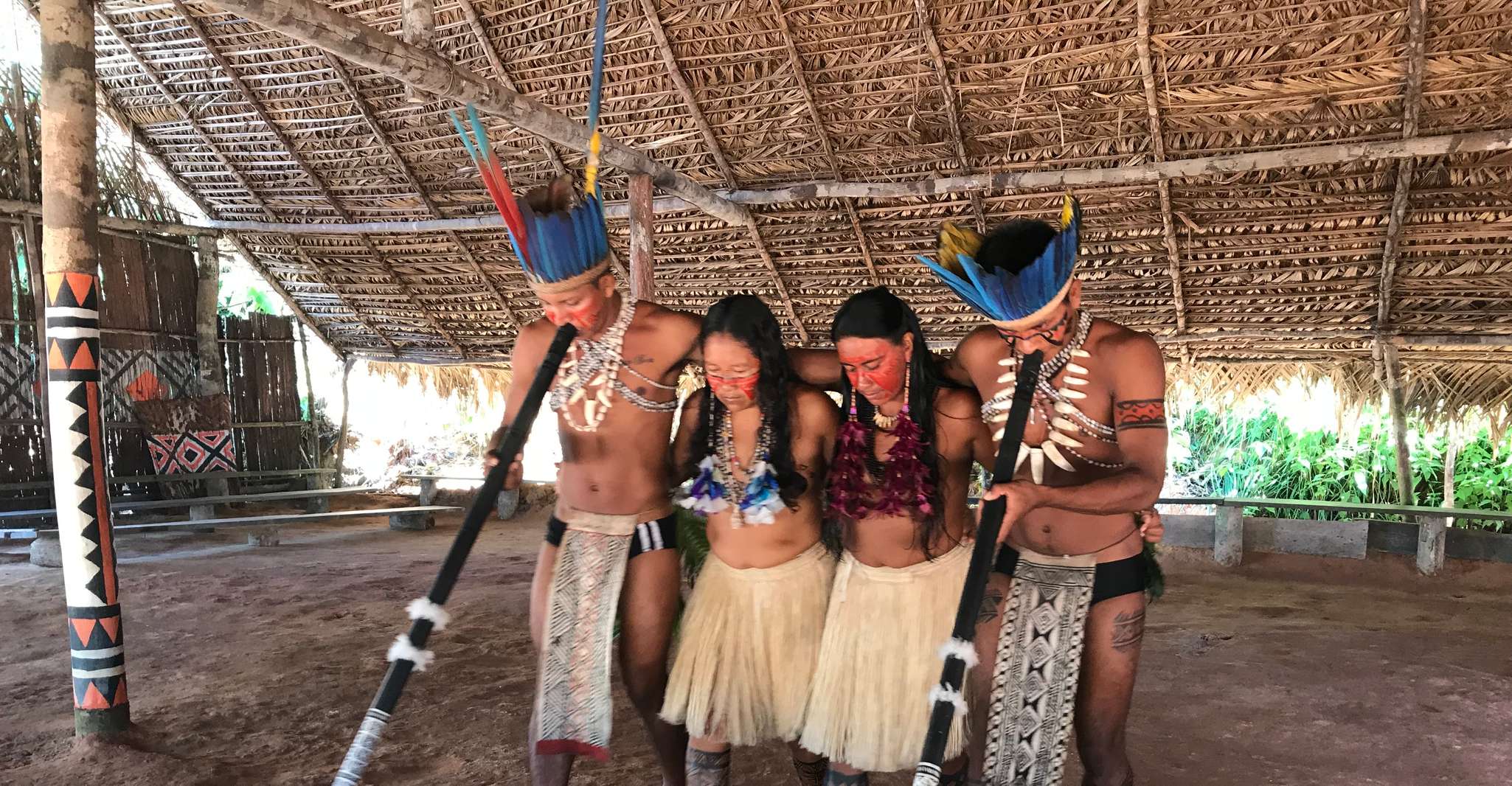 Al despertarse en Manaus, los invitados son recibidos por un servicio de recogida de cortesía de su alojamiento aproximadamente a las 8:00 a.m.Continuando hacia el oeste, llegarán a una ubicación serena donde les espera una embarcación bien mantenida.A medida que se desarrolla el día, los visitantes se embarcan en un viaje a través del tiempo, comenzando con un encuentro cautivador con una tribu indígena, donde son testigos de un ritual tradicional realizado por miembros de la comunidad.Esta experiencia ofrece un vistazo al rico patrimonio cultural de esta región.
