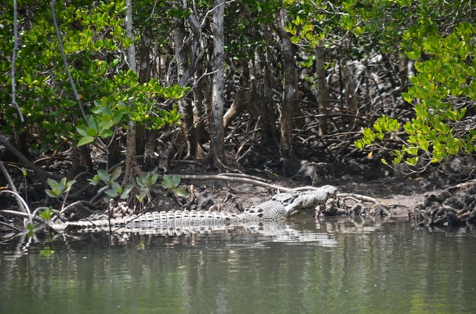 Al abordar el bote de río en el puerto deportivo, navegue a través de los densos pantanos de los manglares de Port Douglas.Proceda a Dickson Inlet, donde descubrirá sus aguas serenas repletas de la vida.A medida que se acerca a la entrada, mantenga un vigilante atento a estos magníficos reptiles que acechan debajo de la superficie.