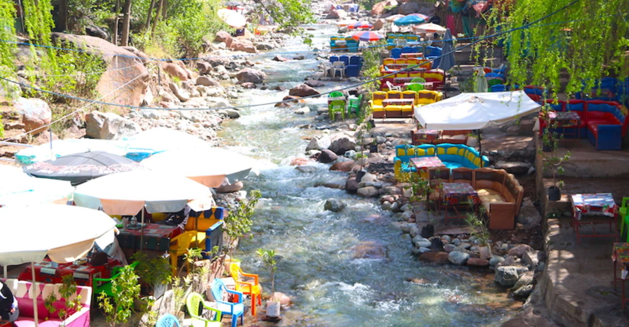Arhbalou cae en cascadas o a lo largo de las orillas del río Ourika